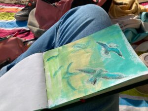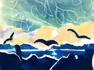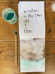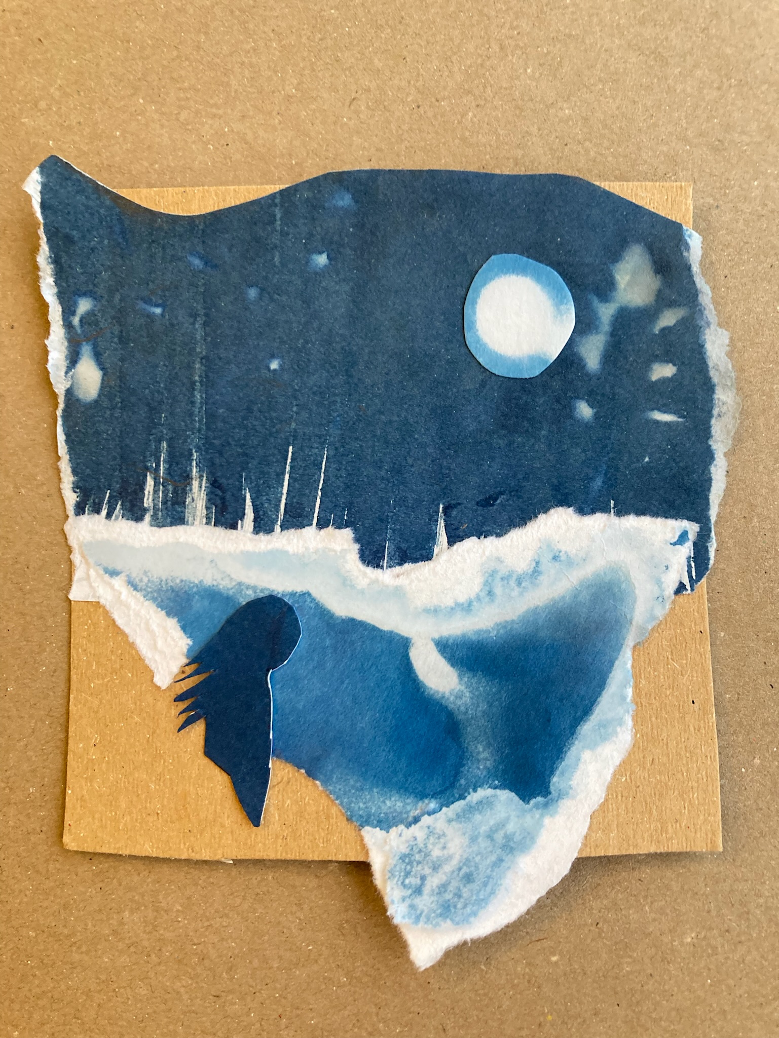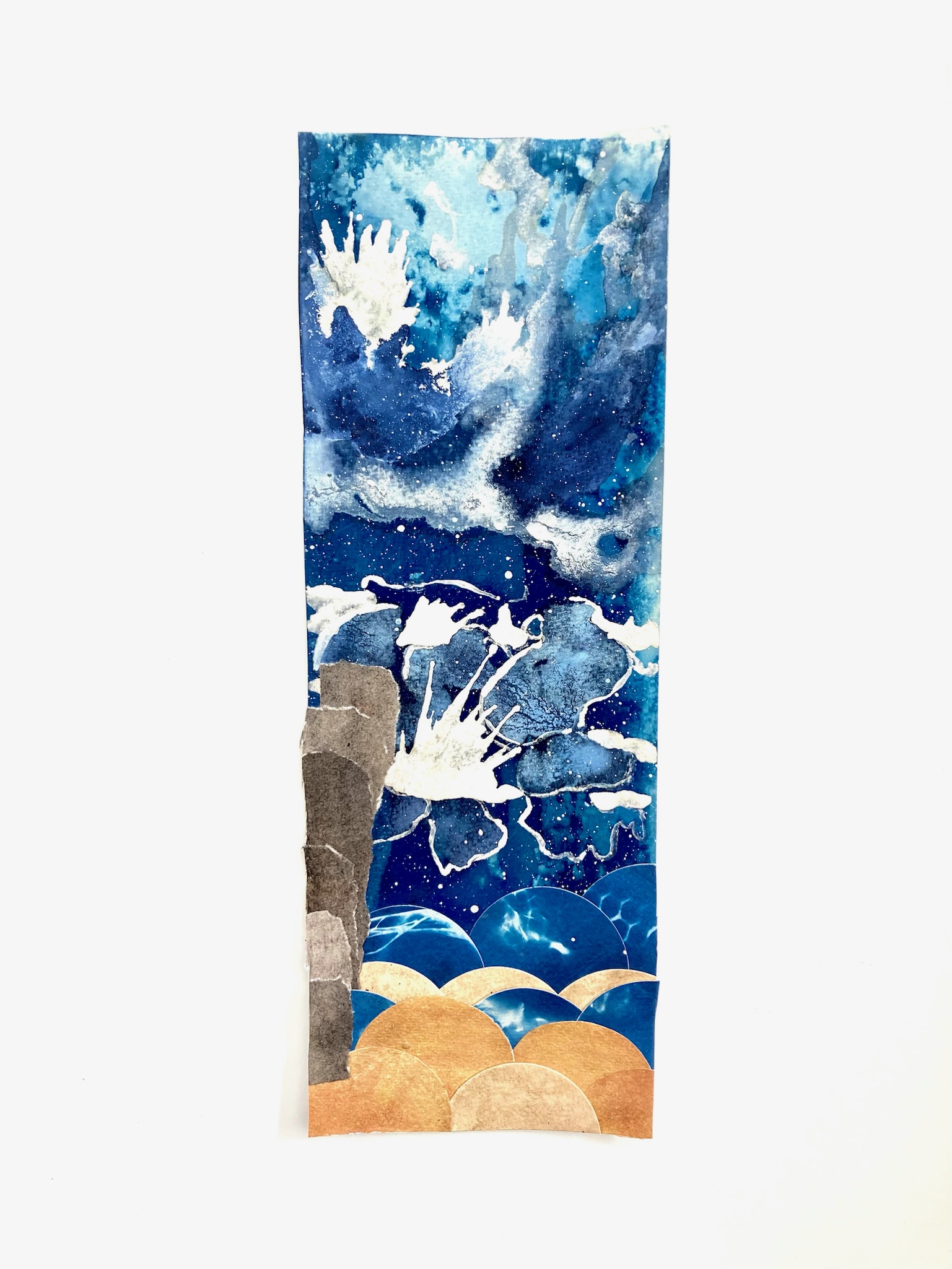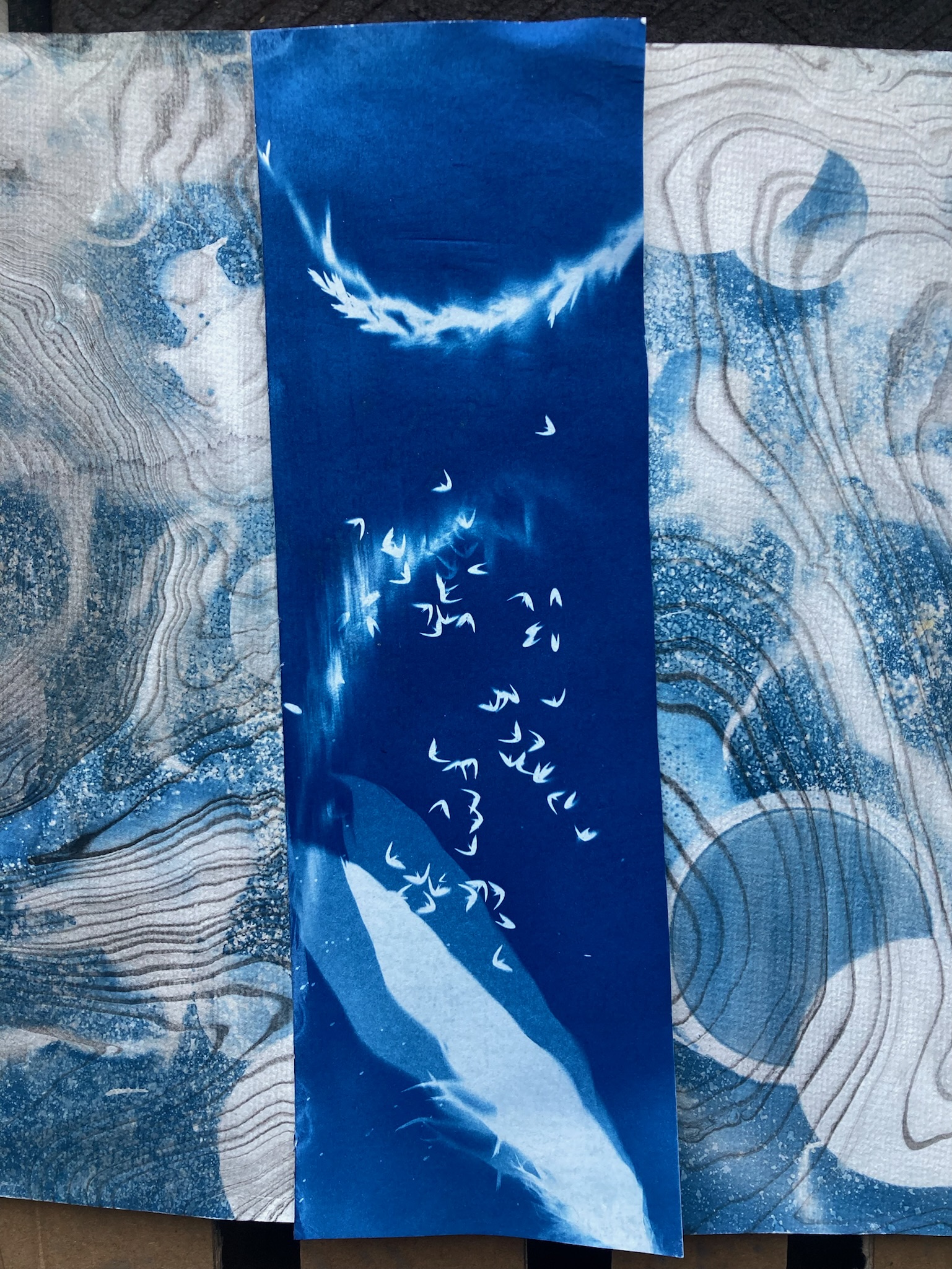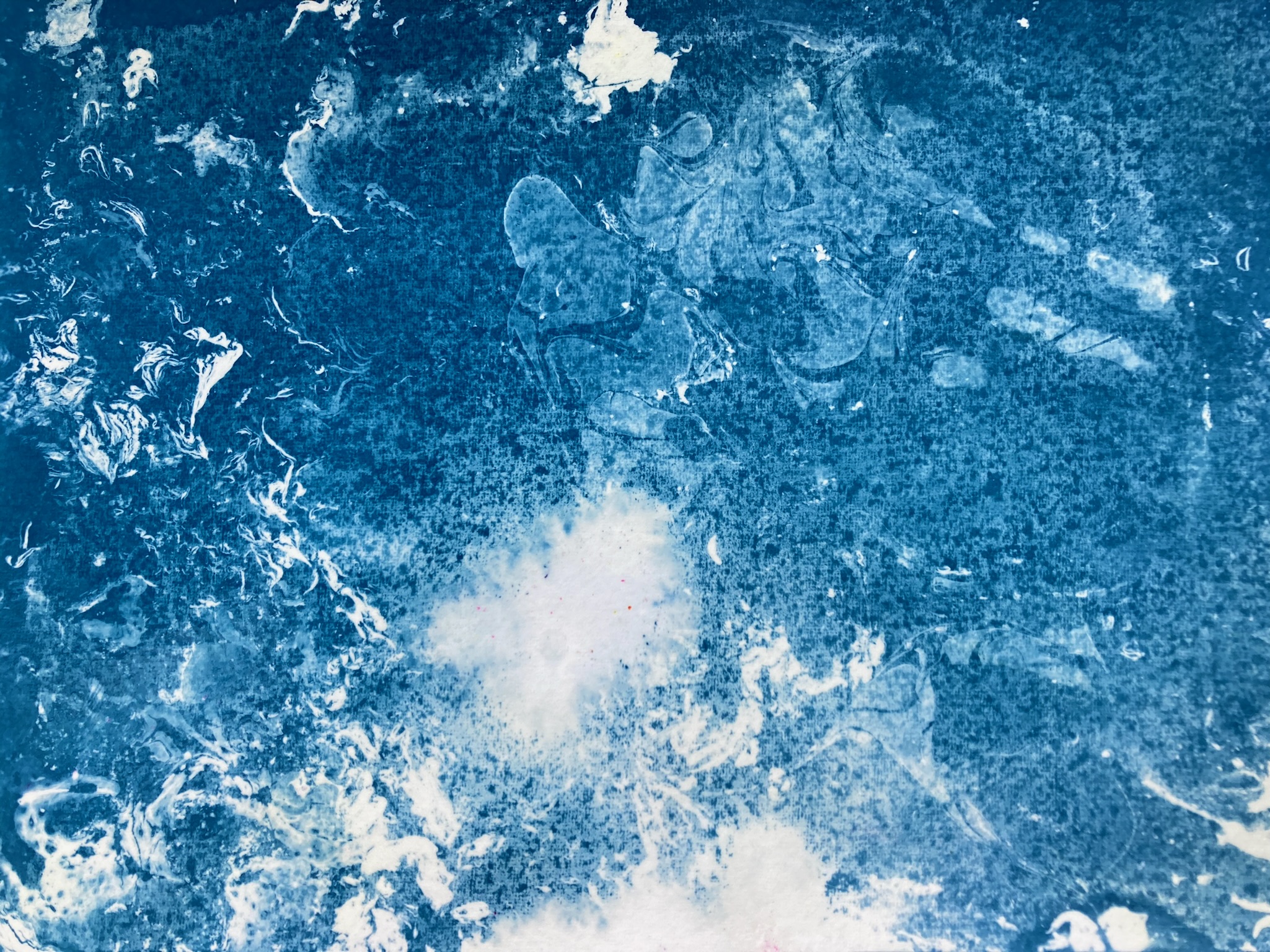 Sketchbook These sketchbook pages trace the early stages of my work. Through collage, sketches and fragments of cyanotype experiments, I explore ideas that gradually grow into my collections. My sketchbook is a place for freedom and play, where experimentation guides the process.